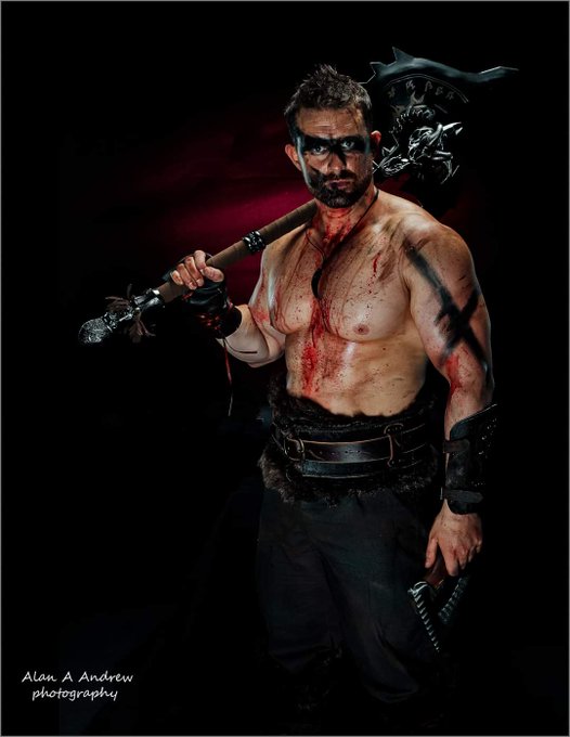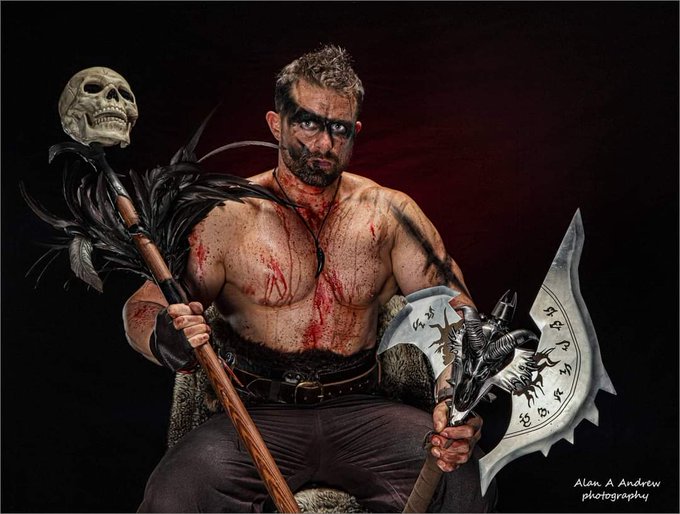 Let me Axe you a Question. Ph: @alanaandrewphotography Make Up: @megusamuu #photooftheday #photographylovers #photography #fitnessphysique #fitnessmotivation #bodybuilding #me #muscle #pecs #arms #cosplayer #conanthebarbarian #viking #warrior #warpaint #arnoldschwarzenegger
