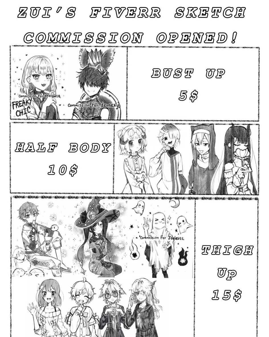 My commission sheet? >< Fiverr Sketch Commissions from 5$-15$! Please check it out if you're interested! It'd support me alot! ✨Sharing is super appreciated! 💜✨ ✨LINK TO FIVERR IS BELOW!✨ #Commission #commissionsopen #sketch #artwork #DigitalArtist #fiverr #fiverrseller