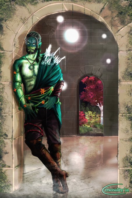 Wallflowering as a handsome onlooker, Fjord Stone graces the scene of the #ExandrianMasquerade in chic Wildmother style. A warlock and paladin of Melora, he is sure to combine both aspects of his worship comfortably. #criticalrolefanart #CriticalRole #Fjord