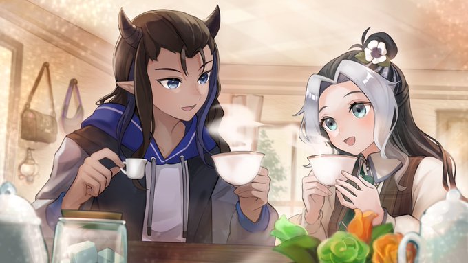 we do a bit of tea spilling~ ✧·˚⌖. ꙳ ✐☡ skeb; thank you! @/OKkobc ✧·˚⌖. ꙳ #shinyjayart 🍵 #flamelart ⚗️ #vtuber