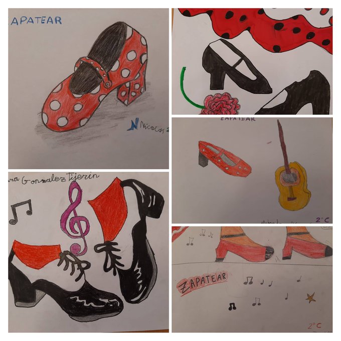 2°C zapatear. Los dibujos de la clase de la seño Isabel, recogen perfectamente la esencia de la palabra zapatear. Ponte los zapatos de tacón y a zapatear... #Inktober #revello #flamenco #vivirysentirelpatrimonio #añodelflamencoenelcolerevellodetoro