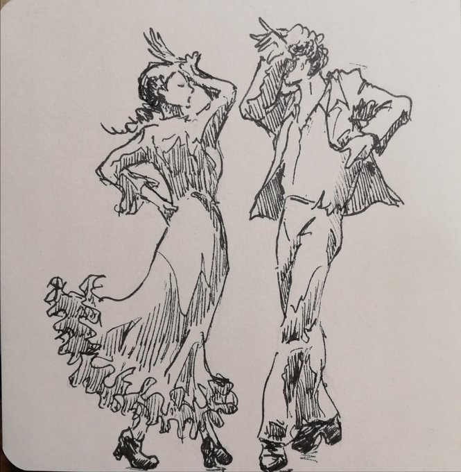 魅力的なダンサーを使って要人を惑わそうと計画していたら、ハスターの別の仕事でダンサーが急遽欠場になり、「ハ~スタ~!!💢🔥」となりながらも自分で代役をこなして計画を遂行するクロウリー #GoodOmensFanArt #Crowley #Flamenco
