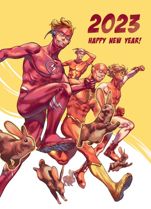 Happy new year2023! 兔年畫了一些和兔子一樣跑很快的人們。 #Flash #JayGarrick #BarryAllen #WallyWest #BartAllen #dccomics #HappyNewYear