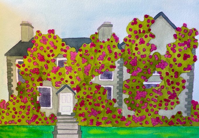 Today the house is covered in roses. All day, people visit, picking a single bloom. Each person bows to the house before leaving, as if in thanks. Those who watch photograph every visitor, until all the flowers are gone. #inktober2021 #inktober #pick #flashfiction #spookyseason