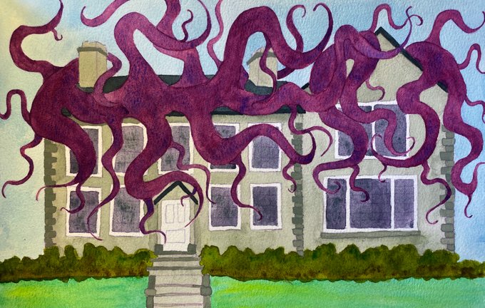 Today the house has eyes. It watches those who watch. Its gaze is uncomfortable, accusing, knowing. The eyes blink slowly in concert, shifting together to follow any movement. Those who watch endeavour to remain still. #inktober2021 #inktober #watch #flashfiction #spookyseason