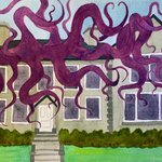 Today a young woman in a severe dress visits the house. Those who watch take photos as she glides through the door. When they return to their office the photos are empty, but a painting of the woman sits on the wall. #inktober2021 #inktober #spirit #flashfiction #spookyseason
