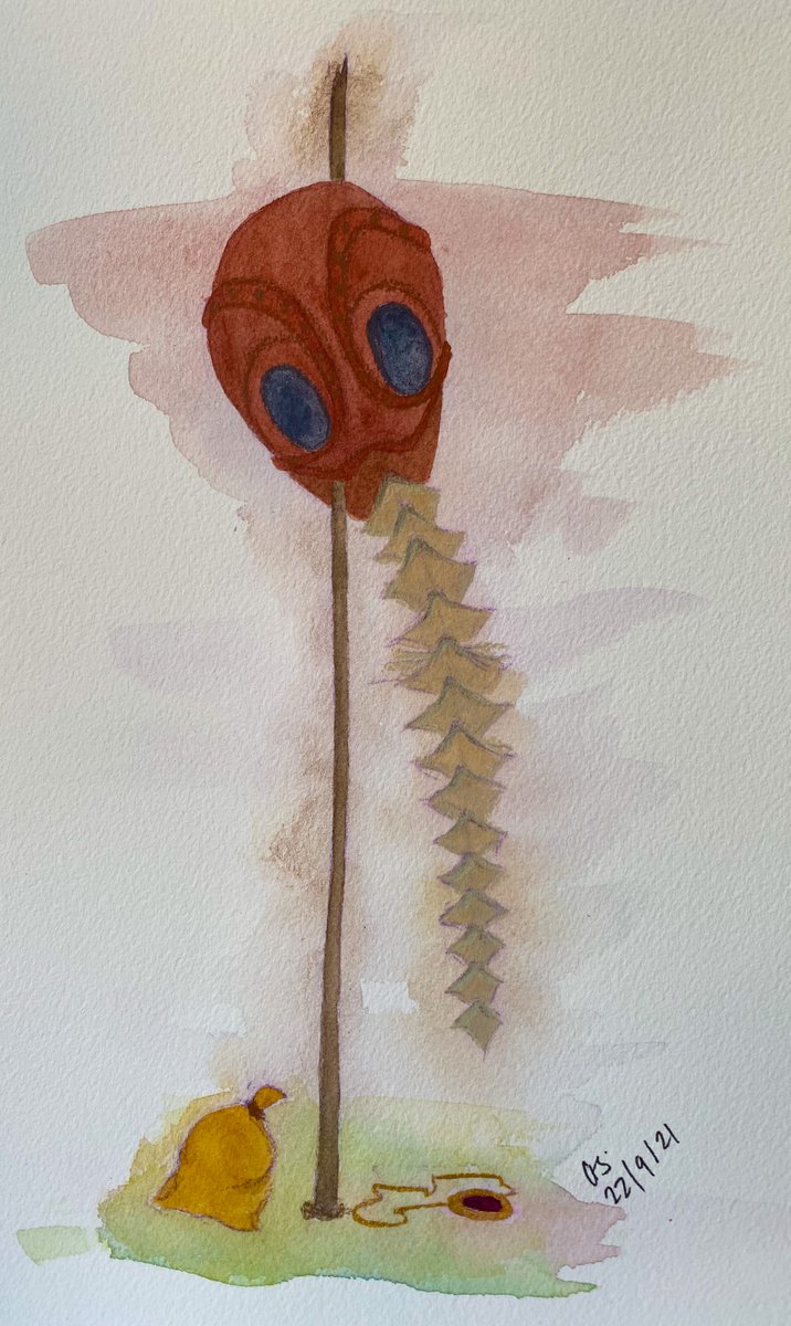 Today there is a helmet, of sorts, staked in front of the house. Those who watch do not understand its significance. They text photos to the office and are met with silence. They feel a loss, utterly inexplicable. #inktober2021 #inktober #helmet #flashfiction #spookyseason