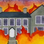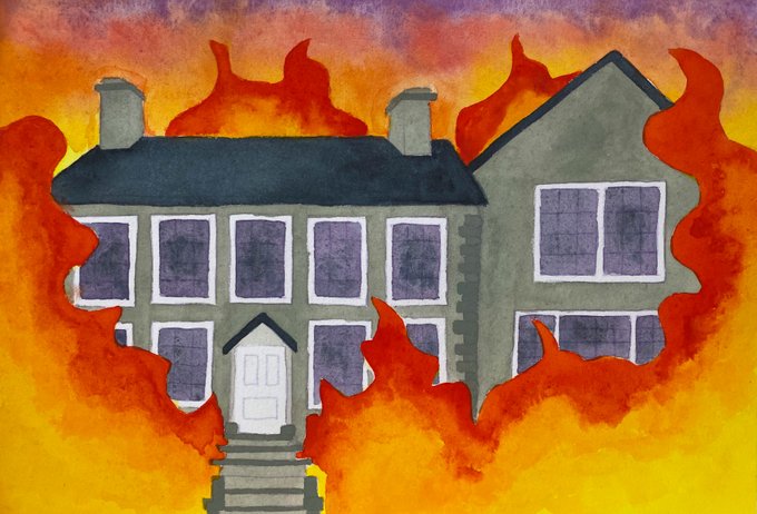 Today the house is surrounded by flames that do not touch it. Those who watch do so from a distance, overwhelmed by heat and smoke. The fire rages against their observing, seeing, knowing. Preparations are being made. #inktober2021 #inktober #crispy #flashfiction #spookyseason