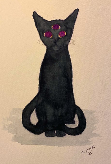 Today there is a cat outside the house. Its fur is a void but for three glittering eyes. It appears unaware of those who watch, chasing butterflies and laying in the sun, but when it sleeps the third eye remains open. #inktober2021 #inktober #fuzzy #flashfiction #spookyseason