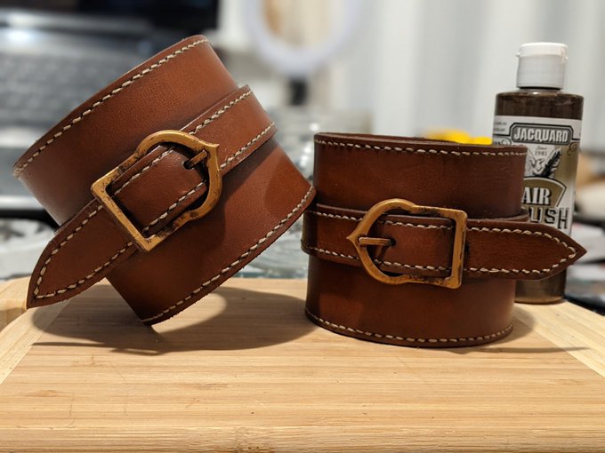 Ciri's arm cuffs are done. Made from genuine leather and hand stitched. Buckles 3D printed. Weathered with Jacquard. 🤙#witcher #thewitcher #TheWitcher3 #TheWitcher3WildHunt #ciri #cosplay #cosplayprogress #cosplayer #flashforge
