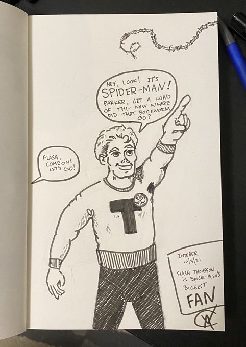 Today’s #Inktober prompt is #Fan. I figured it had been long enough without doing something comics related, so here’s Flash Thompson, Spider-Man’s biggest fan. #inktober2021 #flashthompson #spiderman