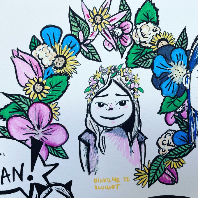Inktober 2022 - jour 6 Bouquet Face A #lasupermini #fleurs #inktober #inktober2022 #bouquet #dessin #posca @inktober