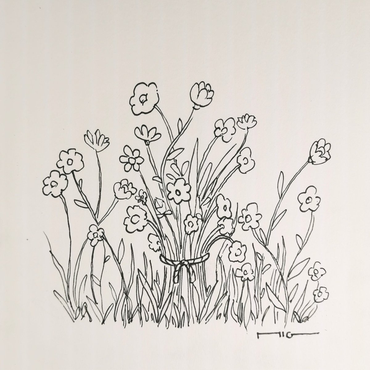 Tiens, ze les ai cueillies pour toi ! #inktober #inktober2022 #inktoberday6 #dessin #sketch #draw #ink #encre #bouquet #fleurs #fleurssauvages #flowers #enfant #child #fleursdeschamps #wildflowers