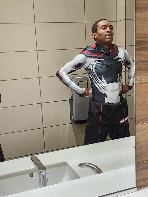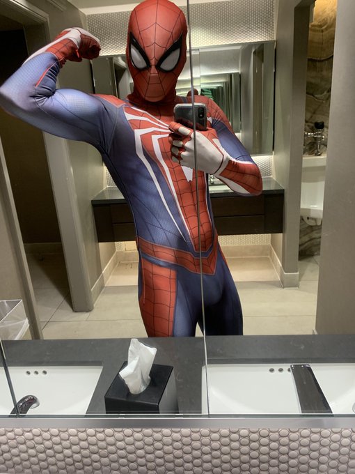 It took me a long time and hard work to get my biceps even remotely visible in spandex and I will build on that. Just before getting out of my suit for the drive home from metrocon I had to take advantage of this lighting. #SpiderMan #marvel #cosplay #flexfriday