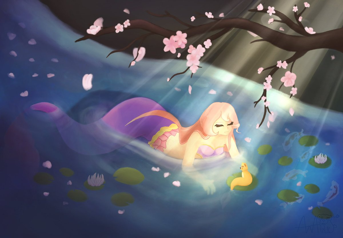 Mermaid Aqua art I did for #mermay and for #FLO official discord spring fanart contest :)) You can see a little mermaid natsu on a lily pad as well :) #fantasylifeonline