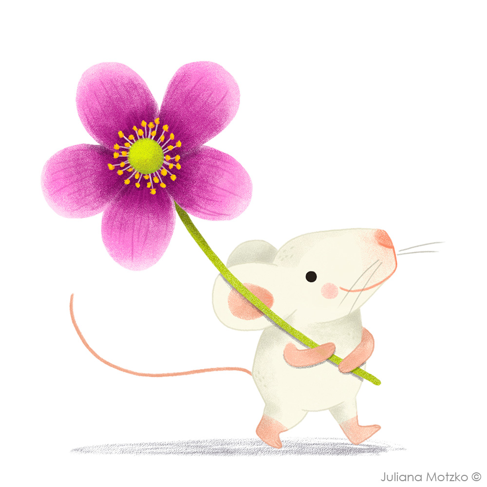A little mouse with an Anemone Flower.🐁🌸 Starting a new series of Flowers and Animals. 🥰 Design available in my stores. Link in Bio. #floralalphabet #flowersalphabet #cute #animal #illustration #illustrator #characterdesign #kidlitart #kidlitartist #JulianaMotzko