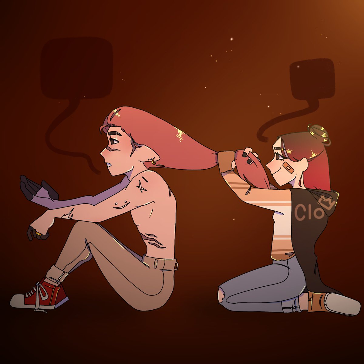 POV: Technoblade let’s Niki braid his hair while they chat <3 #dsmpfanart #technofanart #technobladefanart #nikinihachufanart #nikifanart #fluff
