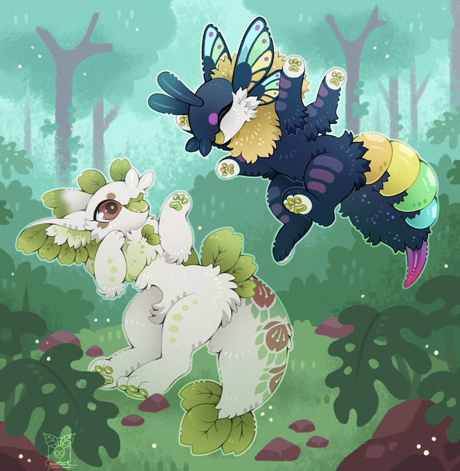 Two beans playing together! A piece I did of mine and @Vanyrys fluffy shrimps~ I love drawing this species 💚 Both designs by @mochiri_work #digitalart #furry #character #illustration #anthro #furryart #art #fursona #kemono #commission #fluffyshrimp