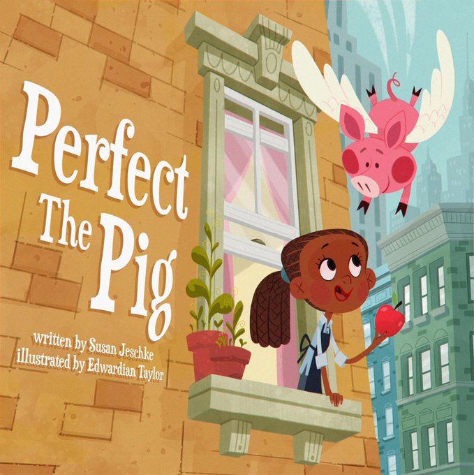 The next #childhood #childrensbook favorite was #PerfectThePig by #SusanJeachke. Who doesn’t love a #flyingpig? #fanart #bookcover #illustration #characterdesign #pig #city