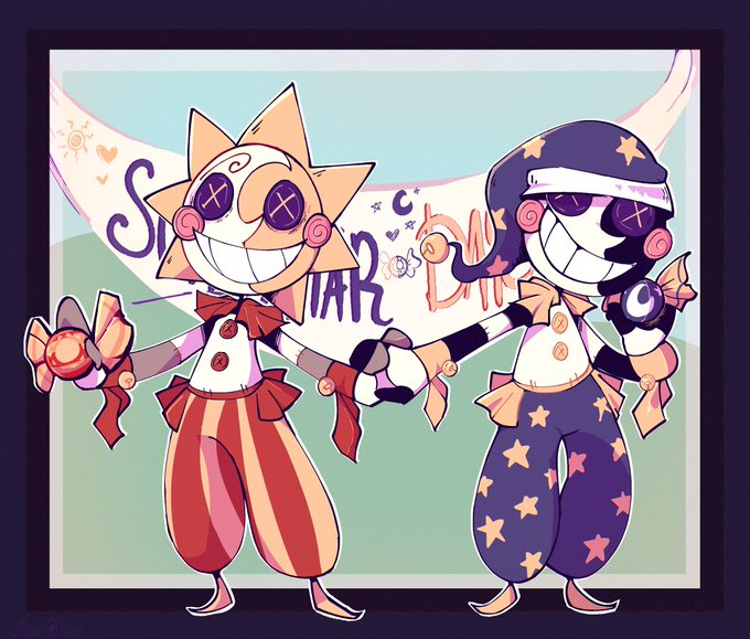Wanted to try n draw Sundrop n' Moondrop in the style of the Parts and Services merch artwork cuz I adore iT I can dream that one day we might even get plushes of best bois from em~ #fnaf #sundrop #moondrop #fnafsundrop #fnafmoondrop #fnafsun #fnafmoon