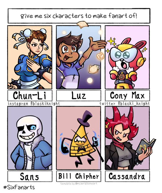 Six fanart challenge with insta suggestions #SixFanarts #BrawlStars #BrawlArt #Undertale #GravityFalls #FNFCassandra #StreetFighter #TheOwlHouse