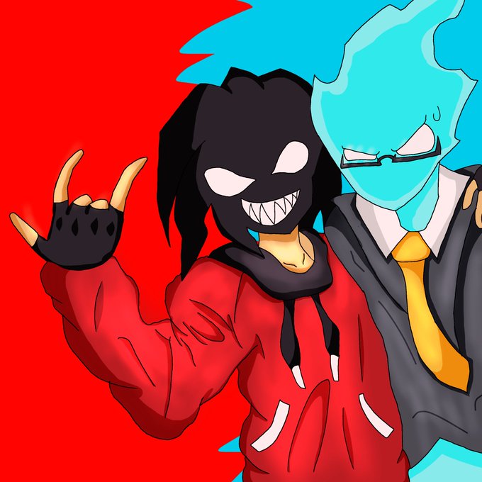 And as promised, part 2! now with Agoti and Aldryx ❤️Hope ya'll like em :] #Fnfentity #fnfsolazar #fnfagoti #fnfaldryx (Again these are not exactly human versions, Agoti still has his tail, the brothers have their pointy teeth and weirdly colored tongues, and Sol's hair is fire)