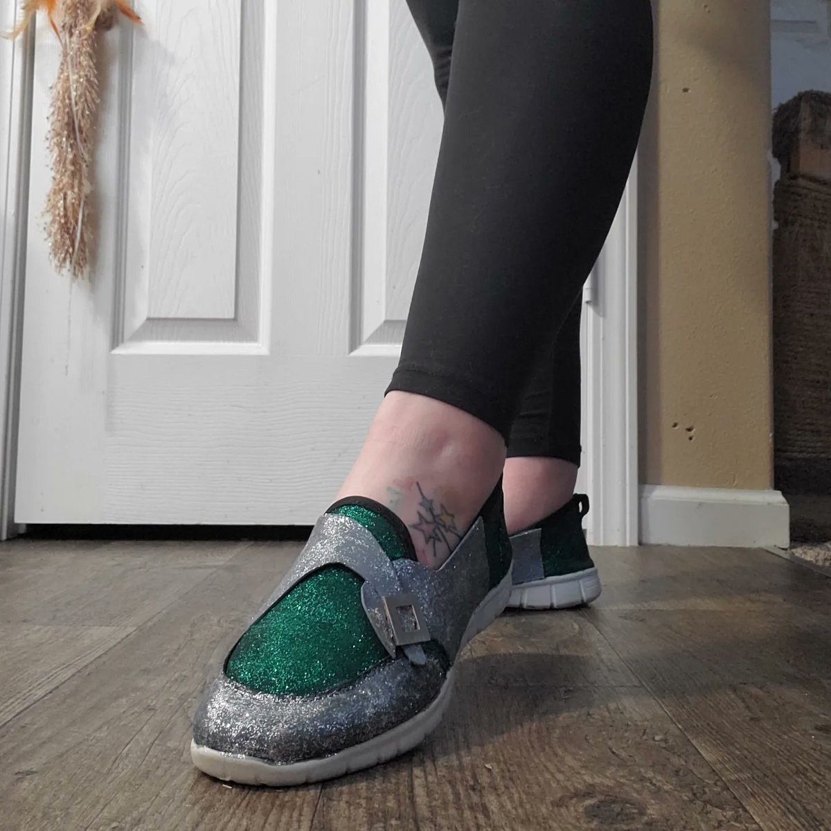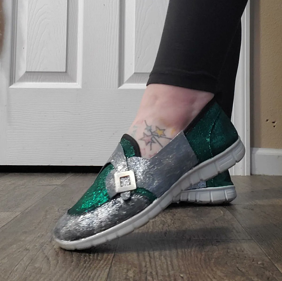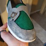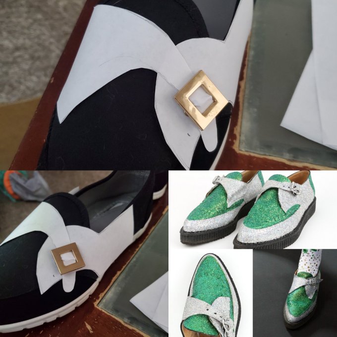 Working on The Riddler shoes. #diy #crafty #cosplayer #theriddler #batman #dccomics #jimcarrey #glitter #green #silver #foam #buckle