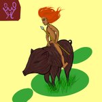 Dia 21 - Fuzzy Curupira montado num porquinho #digitalart #inktober2021 #inktober2021day21 #fuzzy #folclore #curupira