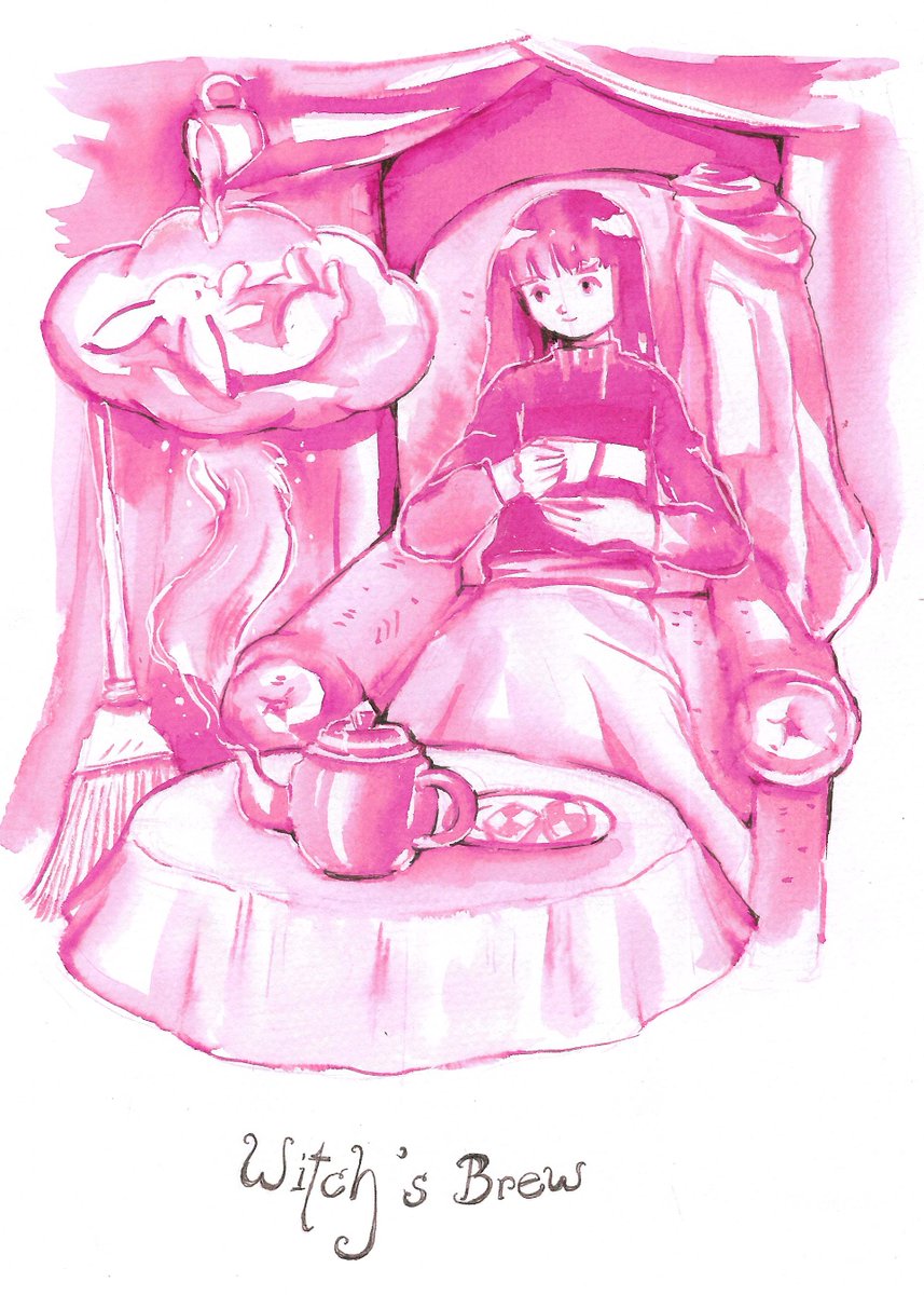 #inktober #inktober2021 #Folioartinktober2021 #WitchTober 7th oct, wanna drink tea on rainy day 🌸