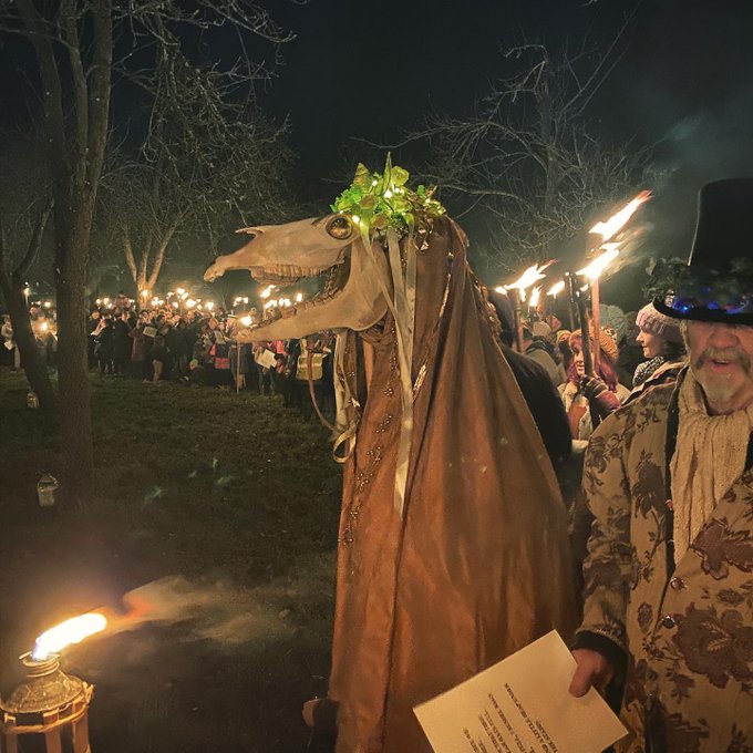 26. #folktober Mari Lwyd. Here is the beautiful Mari sol a few years back at our local wassail in Much Marcle Hereford England. Do you Wassail your orchards ?