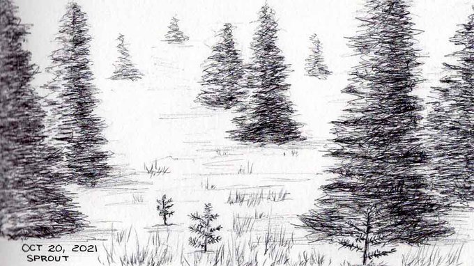 #Inktober #Inktober2021 Challenge. 1 ink #drawing a day through October As ink is not my usual medium, all will be simple subjects. Day 20: #sprout ballpoint Plant #trees, protect our #forests, significant #CarbonSinks crucial to the health of our #planet. #FridaysForFuture