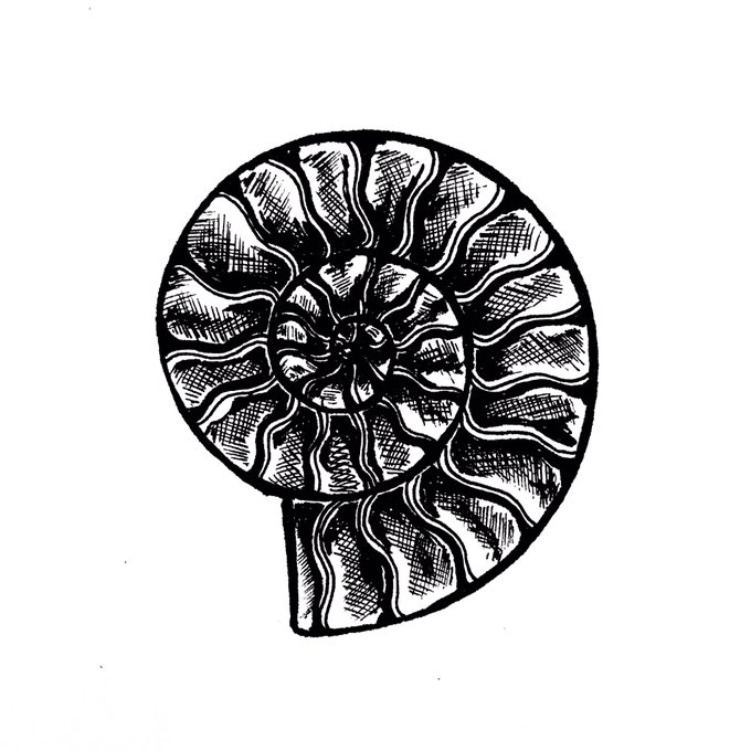 Inktober. Day 24. Extinct. #Inktober #onktobet21 #fossil #inktoberextinct #ammonite #fossilart #myart #inkart #ArtistOnTwitter #artistoninstagram