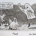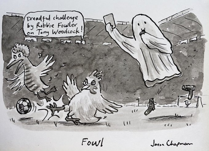 “Fowl” Surely that’s going to VAR? #fowl #foul #doodle #football #var #oops #cartoon #badjoke #sunday #pun #inktober #inktober2022 #ink #art #illustration #illustrationartists #sketch #sketchbook #london #manchester #bristol #horwich