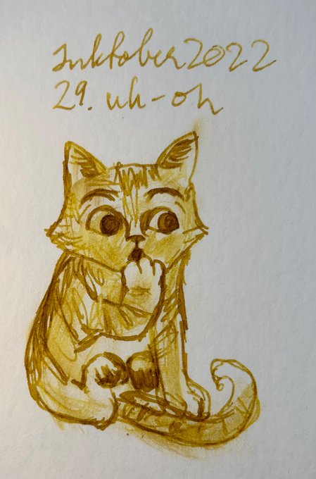 #inktober2022 #inktober #inktoberday29 #uhoh Good thing cartoony #cats don't necessarily have to be perfectly anatomically correct. #MonamiOlika #FountainPen #Callifolio #HeureDoree #fountainpenink
