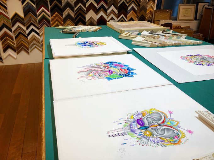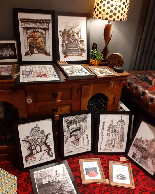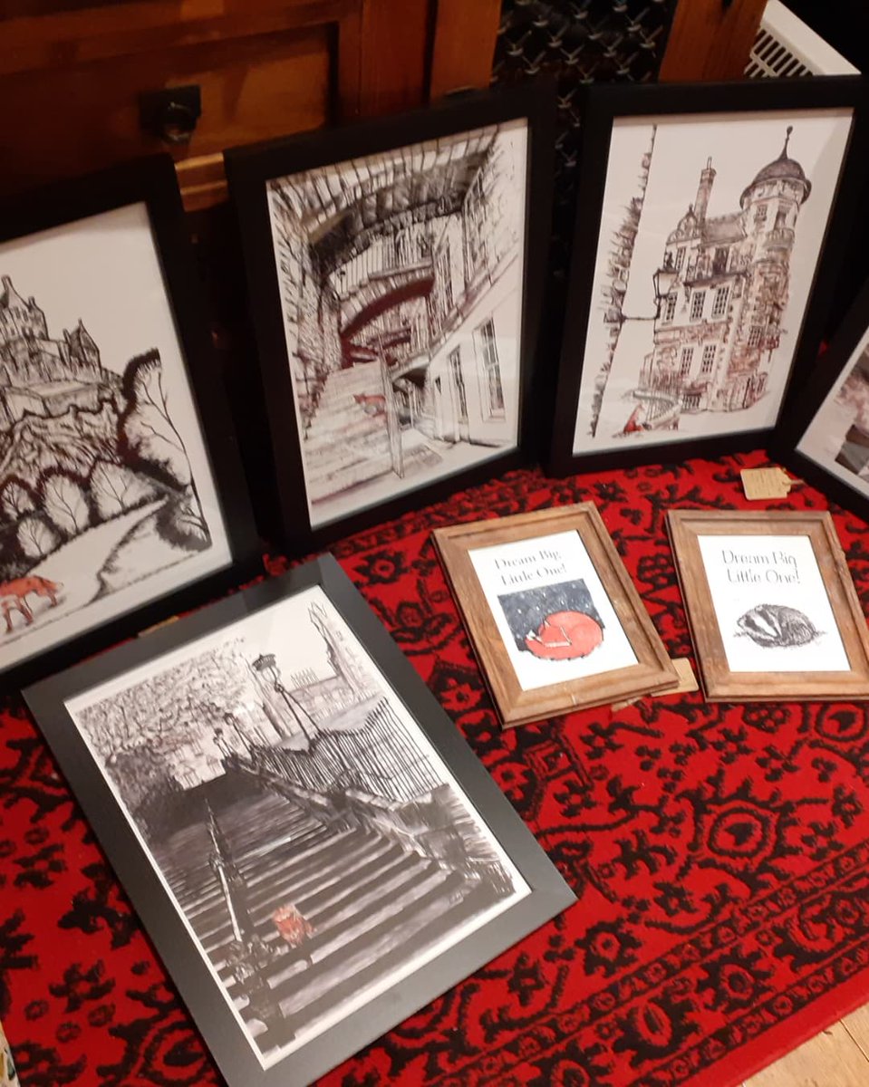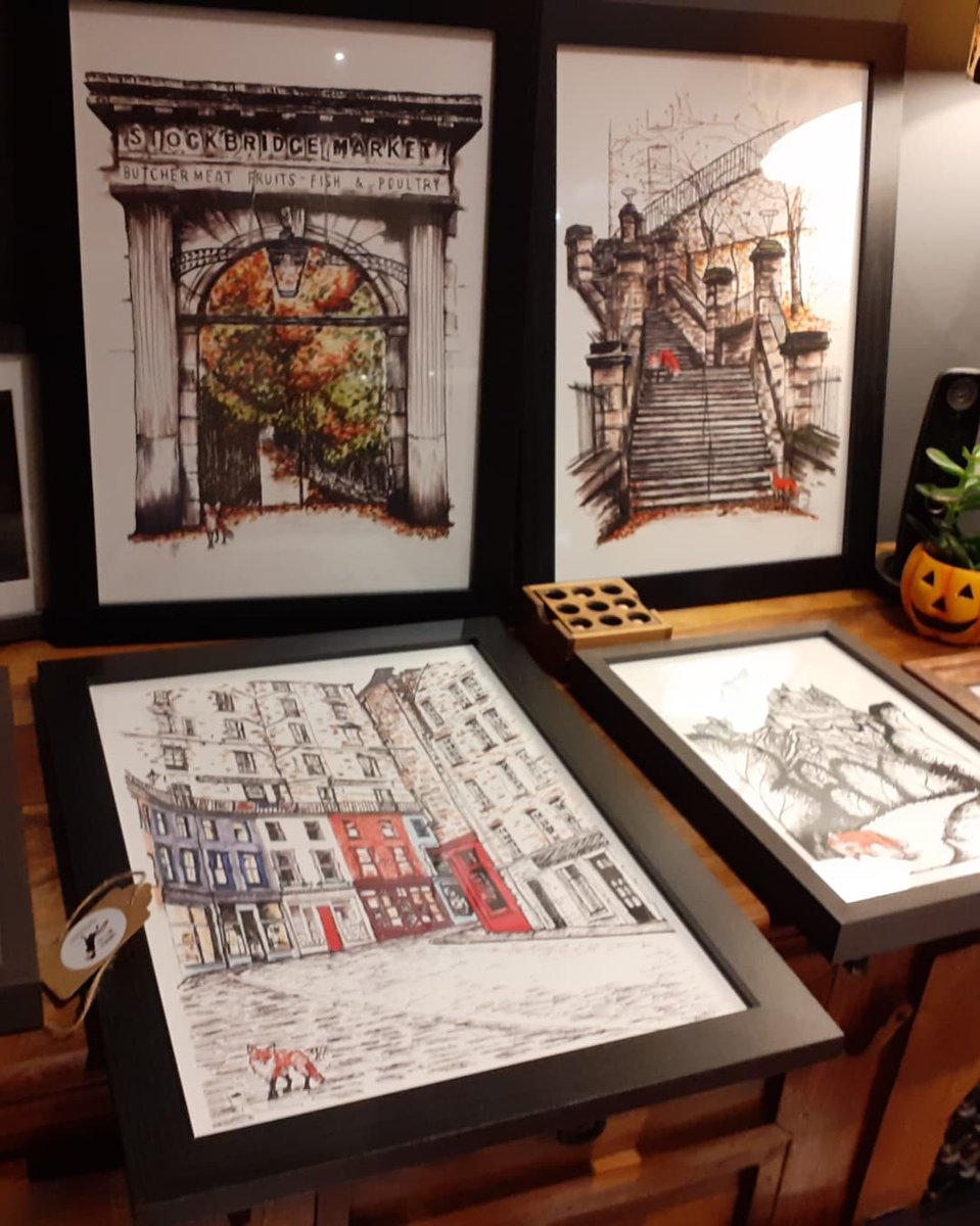 Late night framing frenzy and good music! Looking to top up my shops for the big day! Busy, busy! Delivering some of this lot tomorrow. #shoplocal #localartist #selfemployed #framing #goodmusic #edinburgh #edinburghartist #illustration