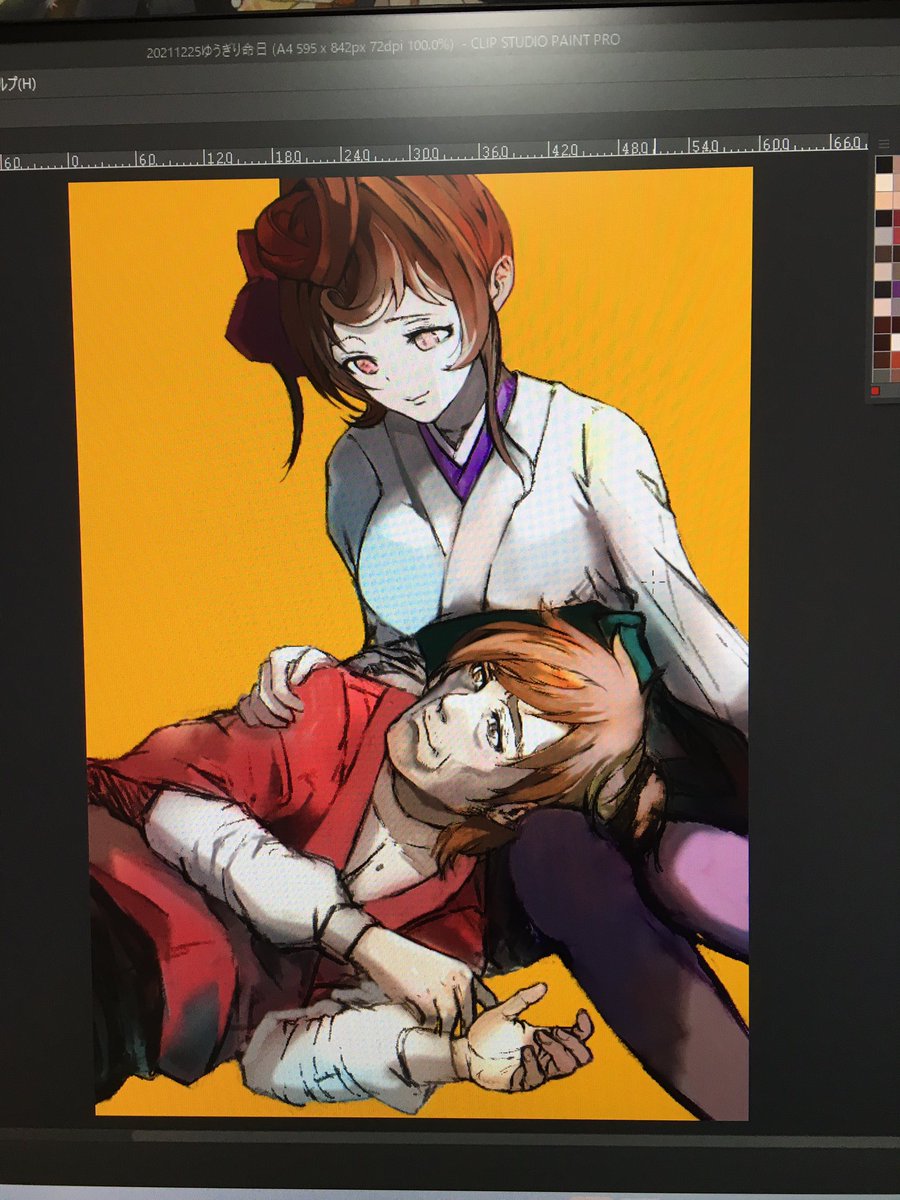 今週1作品目は久しぶりの厚塗りゆうぎりさんです😊🍡 直前までブラシ塗りか迷ったのですが肌がカラーラフ作った時に良い発色が出たのでそのまま厚塗りにしました✨ #ゾンビランドサガ #フランシュシュ #zombielandsaga #franchouchou #ゆうぎり #佐賀事変 今回は制作過程はありません