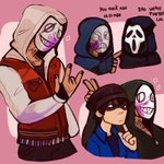 Am at a con cuz of work these days and saw a super cute (tiny!) Ghostface holding hands with Frank :‘D They were looking at some other cosplayers it was so adorable ;w; #doodle #ghostface #dbd #frankmorrison