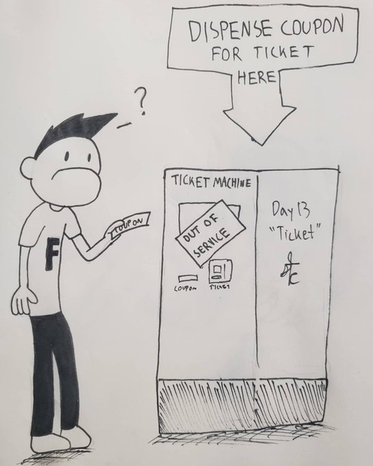 Day 13 "Ticket" Honestly, I didnt really do much with prompt because I was super busy with school due to projects and papers. This is the trade off of being a senior in college. #inktober #inktober2021 #ticket #fredandlucas #fredwashere #art #sketchbook