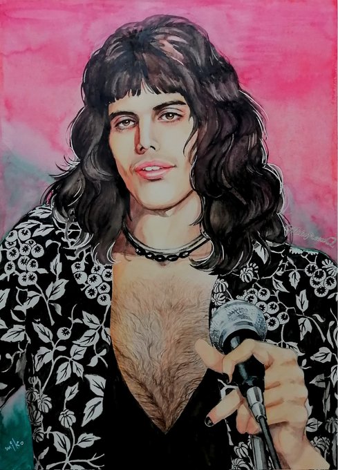 #フォロワー500記念企画 フレディできました😆🎊このフレディ描いてみたかったのですごく楽しかったです😍❣️ もうすぐフレディの命日ですしいい機会を頂戴しました🙏💓 改めて、GunCannon62さんリクエストありがとうございました🙌💕 #FreddieMercury #queen #IWantToBreakFree #水彩画