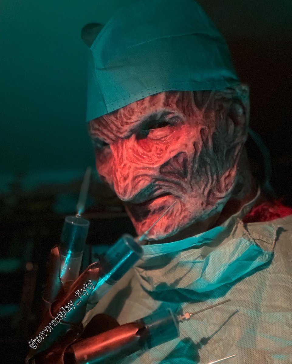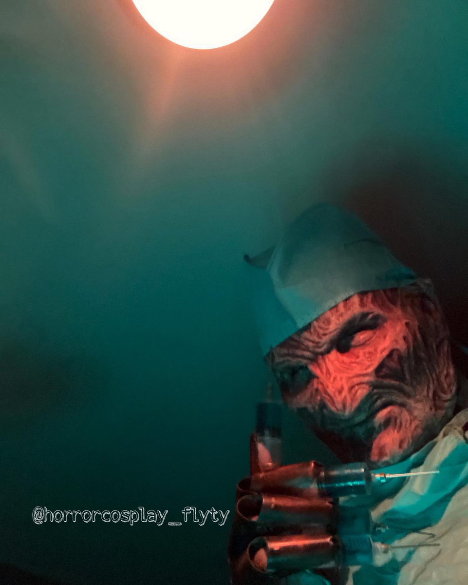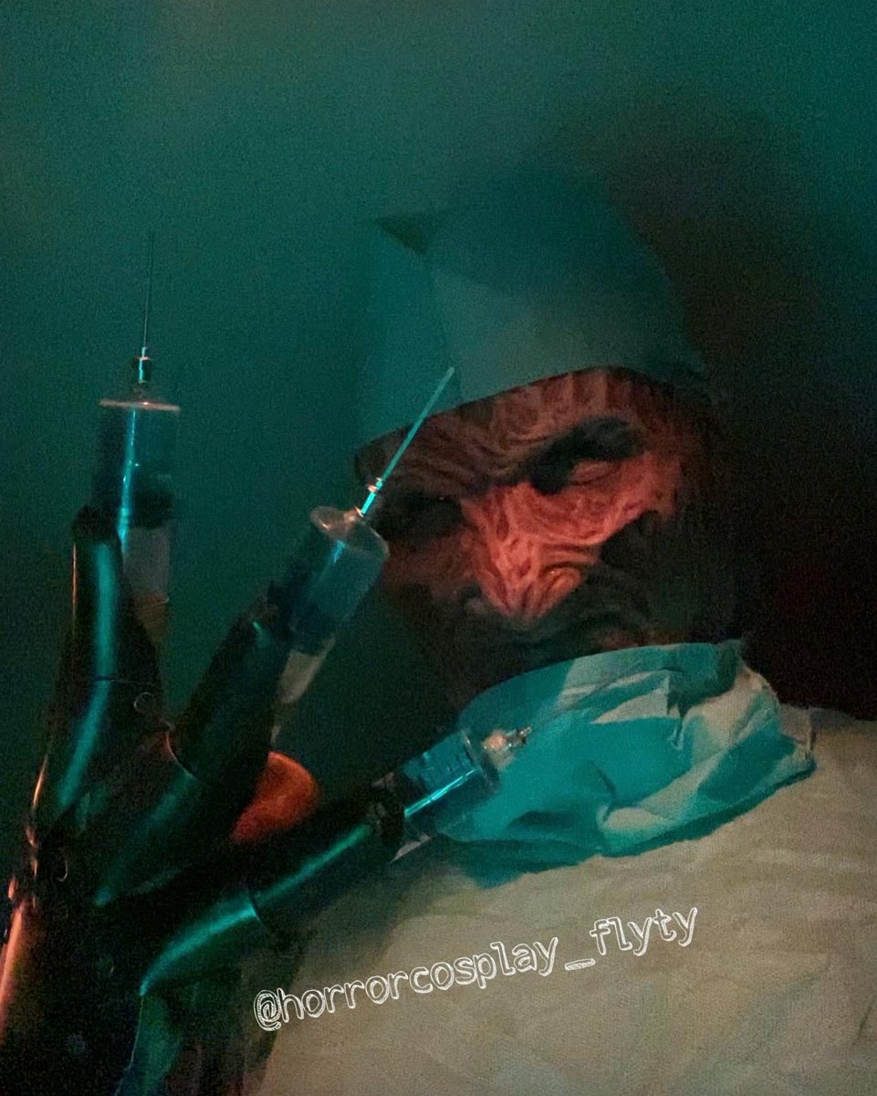How bout a taste of Freddys medicine 😁😈💉 #cosplay #cosplayer #surgeonfreddy #freddykruegercosplayer #HorrorCommunity #cosplayers #HorrorFan #HorrorFamily