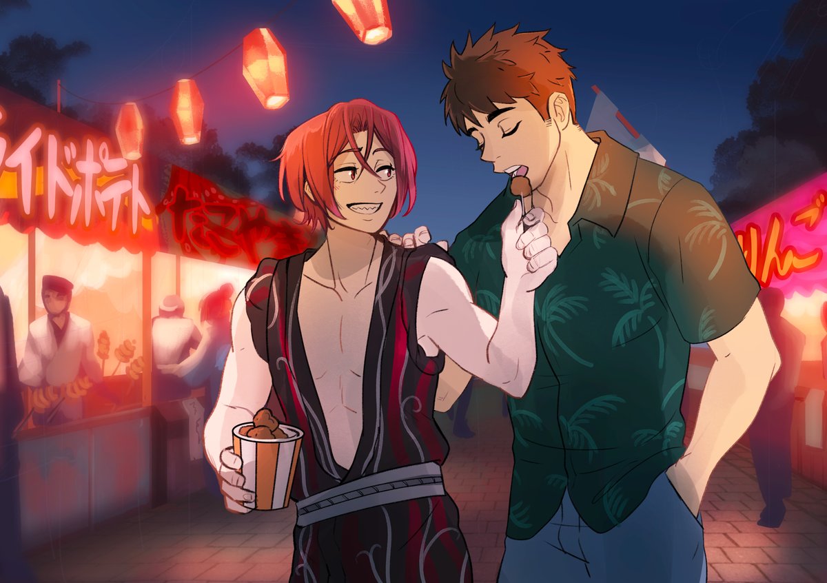 We can finally share our MakoHaru + AsaKisu September collab piece for #freefancalendar2022 💃🏻 Background + coloring by @souurin and lines + coloring by me 🥰 Hope u like it! 💙💚🧡❤️