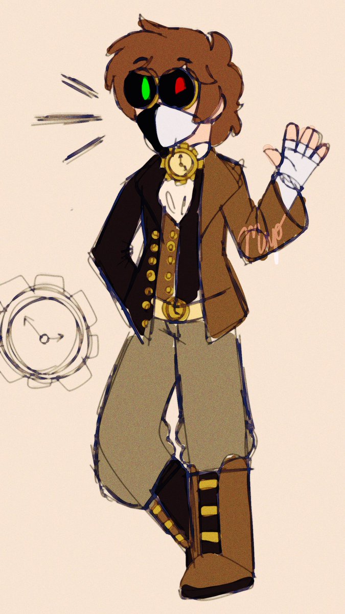 (Rantember Day 10) 30 Day SMP Boo @crybootwt When I think of 30 Day SMP designs I like to think of the irl CC's with some clockwork/steampunk outfit (Based on Croissant and Timekeeper!!) [ #ranboo #ranboofanart #bootwt #rantember #freetrialtwt (?) #30daysmp #freetrialsmp ]