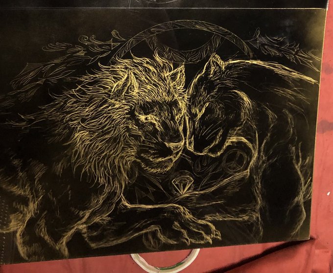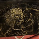 アクリル板をカッターナイフで削って描く #スクラッチアート 🐺 🐉 #traditionalart #fantasyartwork #龍 #龍絵師 #wolf #絵描きさんと繋がりたい #artoftheday #創作の狼煙 #アトリエの系譜 #freshartist_jp