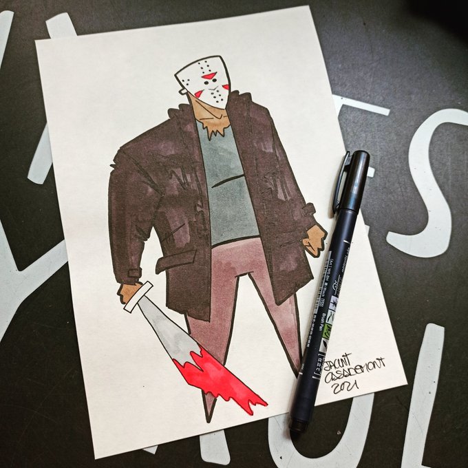 #Inktober2021 Personatges de #Halloween 1/31 Jason Vorhees Sí el vols comprar DM #ink #copic #sketch #sketchbook #creative #totsants #creepy #terror #horror #movies #handdraw #jason #jasonvorhees #friday13th