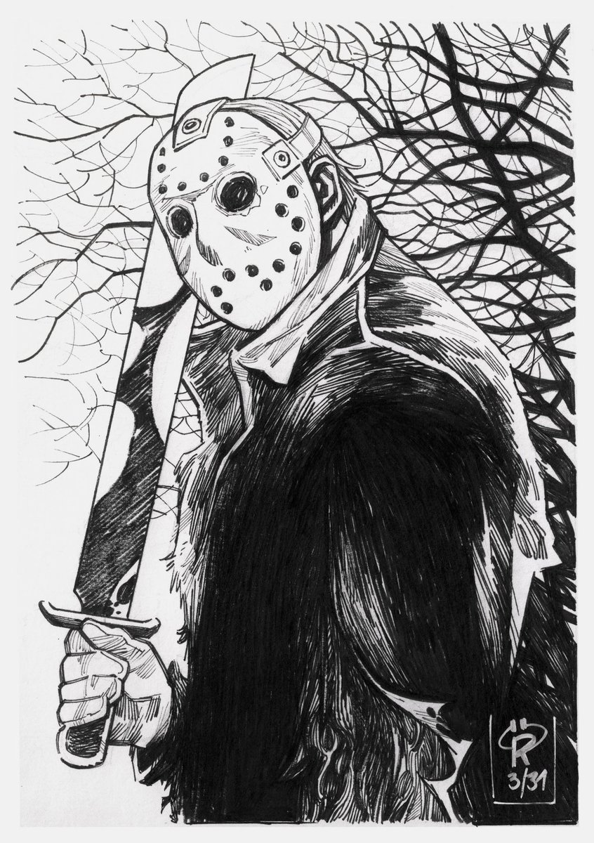 Day 13: 🖤 Friday 13th 🖤 #inktober #inktober2022 #sadinktober22 #spooky #spookyfilms #terrormovies #terror #jason #friday13th #jasonvoorhees #art #draw #micron #sakuraink #koi #crayola #copic #einaart #einavg #eina