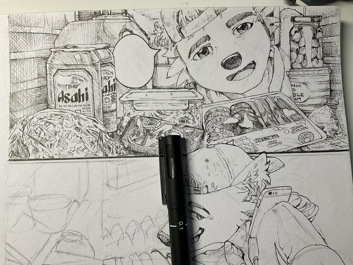 INKTOBER 2022 𝗗𝗔𝗬 𝟮𝟳: SNACK #inktoberday27 #Inktober #inktober2022 #snack #fridge #juice #girlfriend