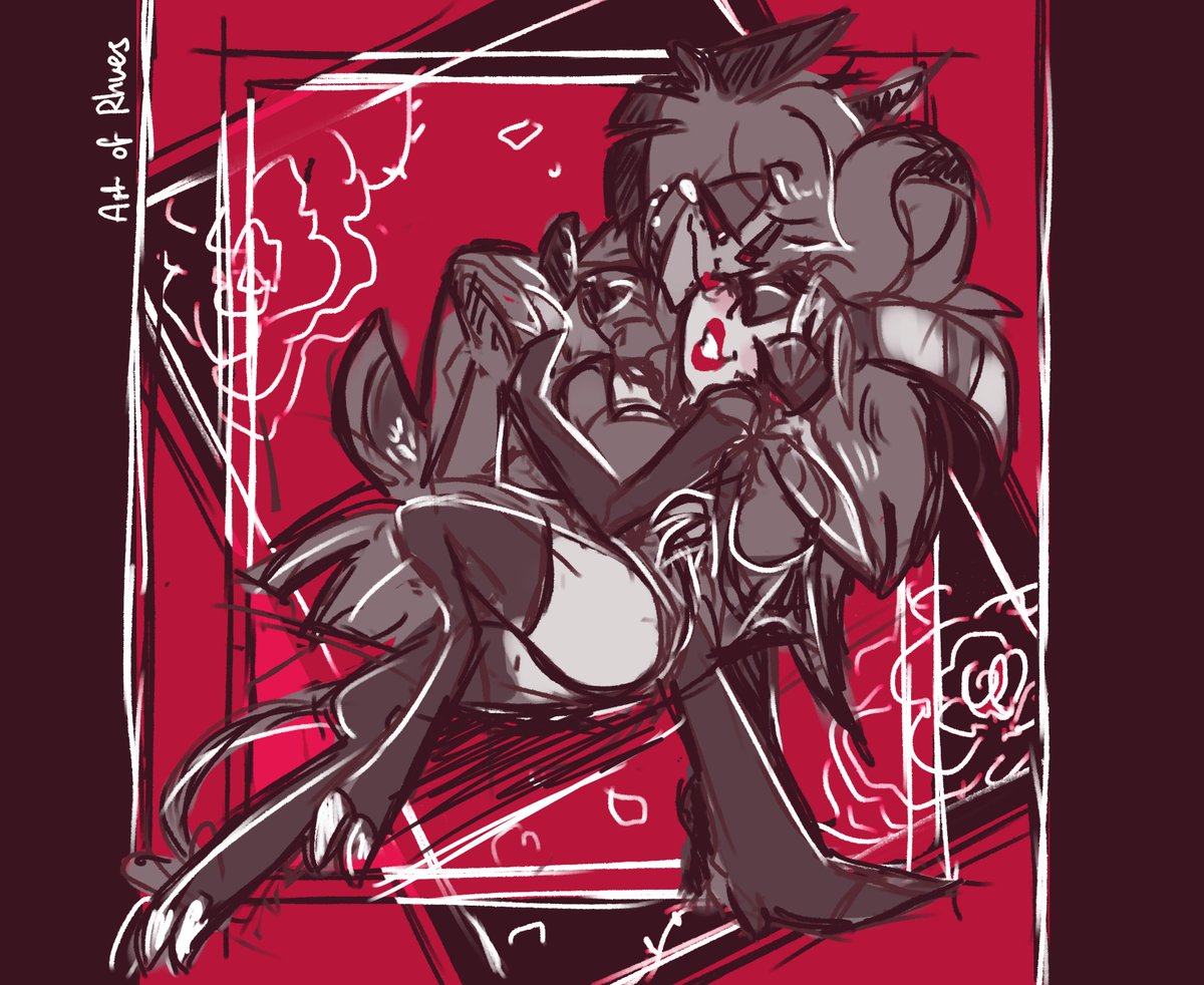 While I do like the final results, there's just something I adore about the rough initial sketches... #HazbinHotelFanart #HazbinHotelAlastor #HazbinHotelLucifer #HazbinHotelOC #friendsocs #artofrhues
