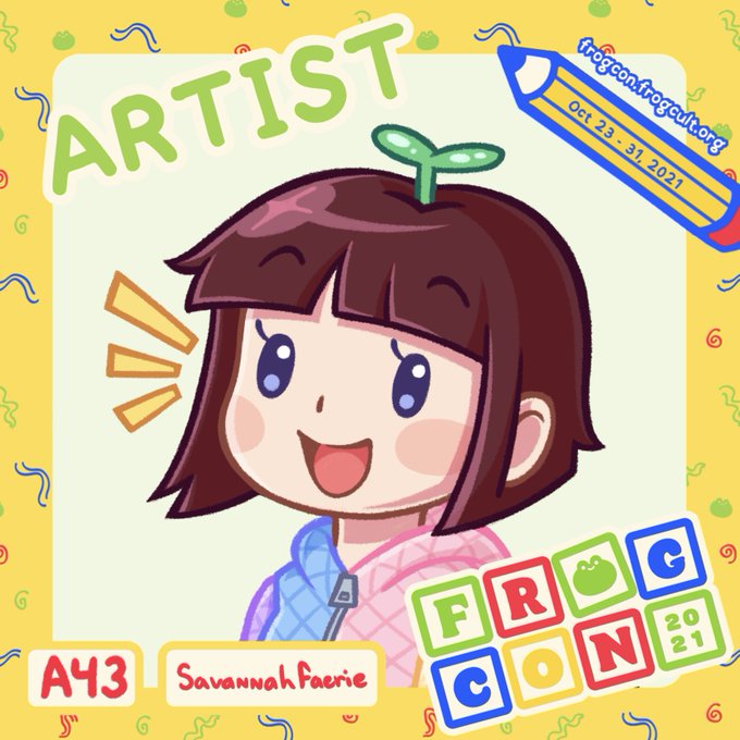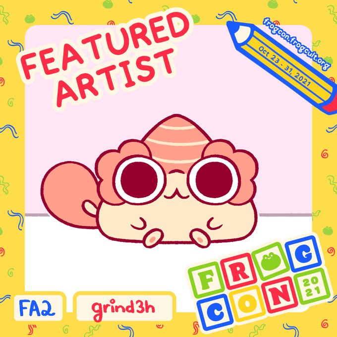 real excite to announce that i'm a featured artist at the first ever #frogcon2021, hosted by @thefrogcult!!! it's a virtual con for frog likers, oct 23rd-31st~!!! it'll be a really fun time, hope y'all are lookin forward to all the cute new frog merch as much as i am!!!! 👀💦