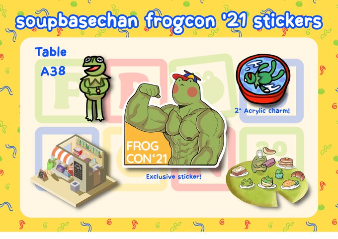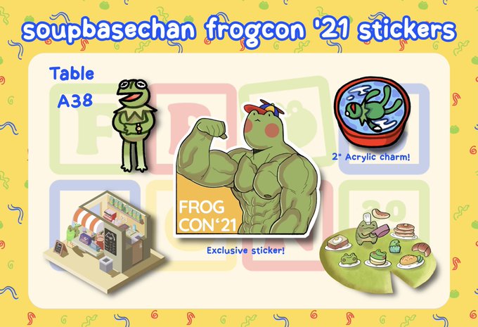 #frogcon2021 is live now, visit my store at soupbasechan.bigcartel.com visit other tables at frogcon.expofp.com check out the website for official merch and more at frogcon.frogcult.org