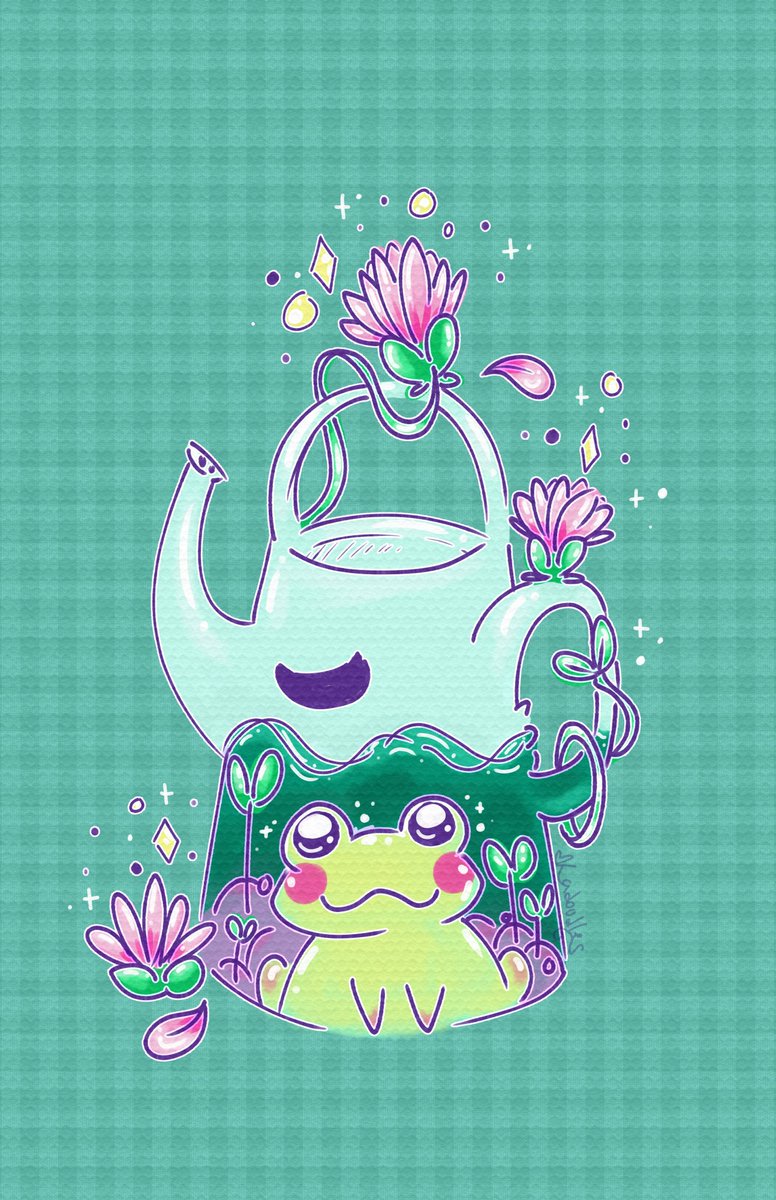 Splashing Into Spring! 💧🐸🌸 Today's live #art stream result! Thanks to those who watched! A #cute #froggy jumping into a puddle seemed fitting for the first day of #spring! youtube.com/c/stephaniehar… #frog #springtime #Inkscape #illustration #frogs #springhassprung